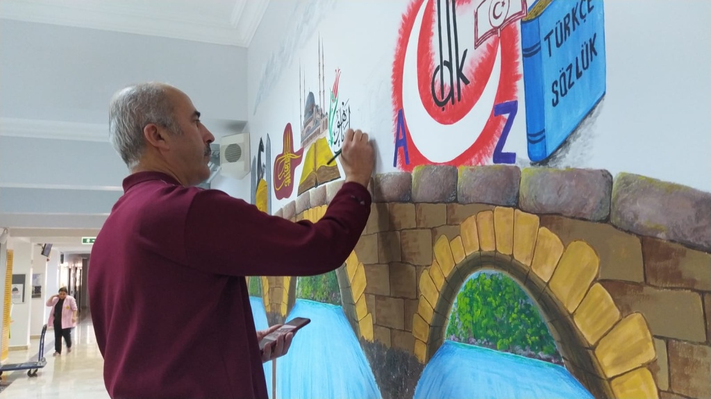 Diyor Namık GÖKÇAY bizde Dilimizin Zenginliklerini öğrencilerimize tanıtmak ve dilimizin tarihsel gelişimine şahit olmalarını sağlamak amacıyla okul koridorumuza resimler çizdik.Her bir karesinde tarihimize ışık tutan bu görseli oluşturan Değerli Görsel Sanatlar Öğretmenimiz Celalettin ATICIGİL'e ve Türk Dili ve Edebiyatı Öğretmenimiz Esra OKTAY 'a teşekkür ederiz.